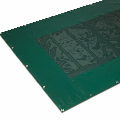 Combinatiezeil voor XL zwembaden van PVC gaas 340 en rondom dichte strook (+/- 58cm) PVC 620 in Groen, Grijs of Zwart. Rondom gezoomd en RVS zeilringen elke 50cm.
