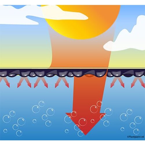 Waar u vroeger moest kiezen tussen lichtdoorlaatbaarheid (voor gratis opwarming) en lichtblokkering (tegen algen), biedt de nieuwe luchtkussenfolie EnergyGuard Selective Transmission het beste van beide. Het materiaal heeft een transparante toplaag en een heel donkerblauwe onderlaag. Het materiaal onderscheidt zich door haar ‘Selective Transmission’ eigenschappen.
