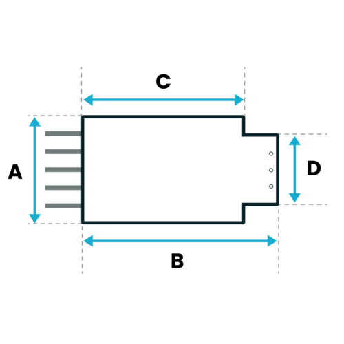 Maten B, C en D = afstand tussen wanden - 2cm speling