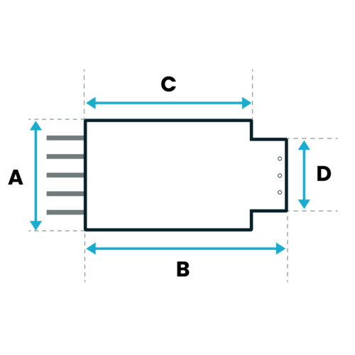Maten B, C en D = afstand tussen wanden - 2cm speling