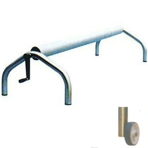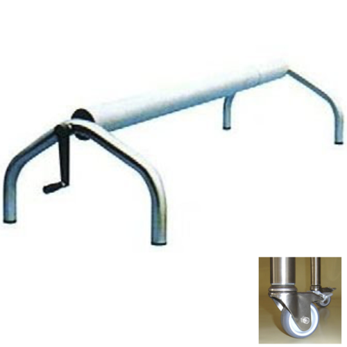Stevig oprolsysteem van Europees fabrikaat. Geschikt voor noppenfolie en schuimafdekkingen met een breedte tot 6,5m. U kunt kiezen uit 3 soorten steunen: vast, mobiel (2 banden) en mobiel (4 rvs zwenkwielen).